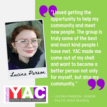 The mission of the YAC is to empower youth to be involved in community decision making, to encourage active community participation, to cultivate a spirit of philanthropy, and to instill in members a deeper sense of community pride. YAC members will learn about the grantmaking process by awarding grant dollars in their communities and by developing a community project.